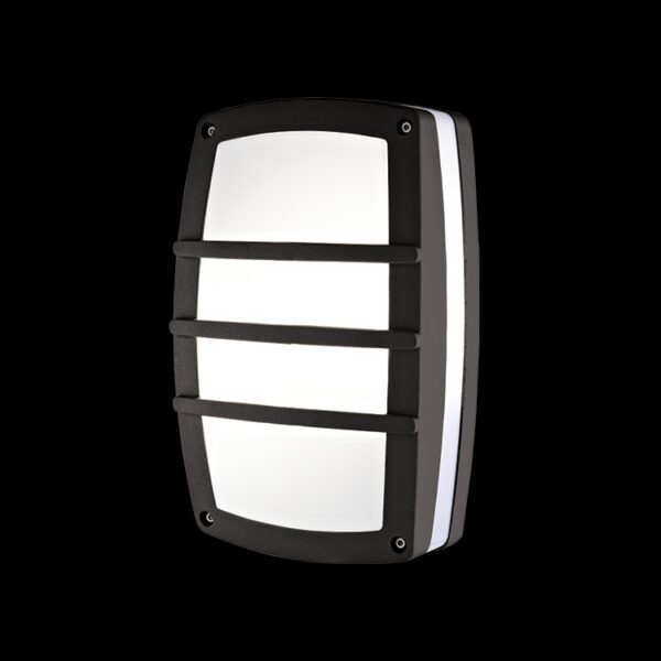 2xE27 Rect. Grid IP-54 Black Bulkhead