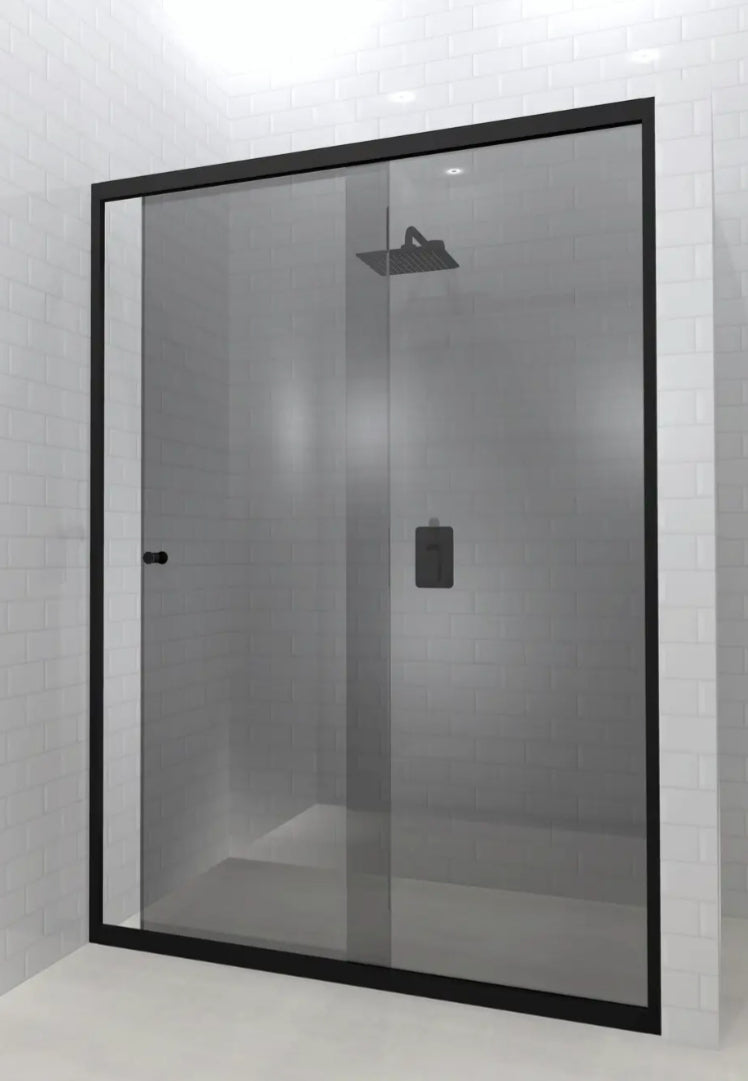 Lave Madine Adjustable Slider Door Fully Framed 1200-1400x2000mm (5mm) - Black Frame Smoke Glass