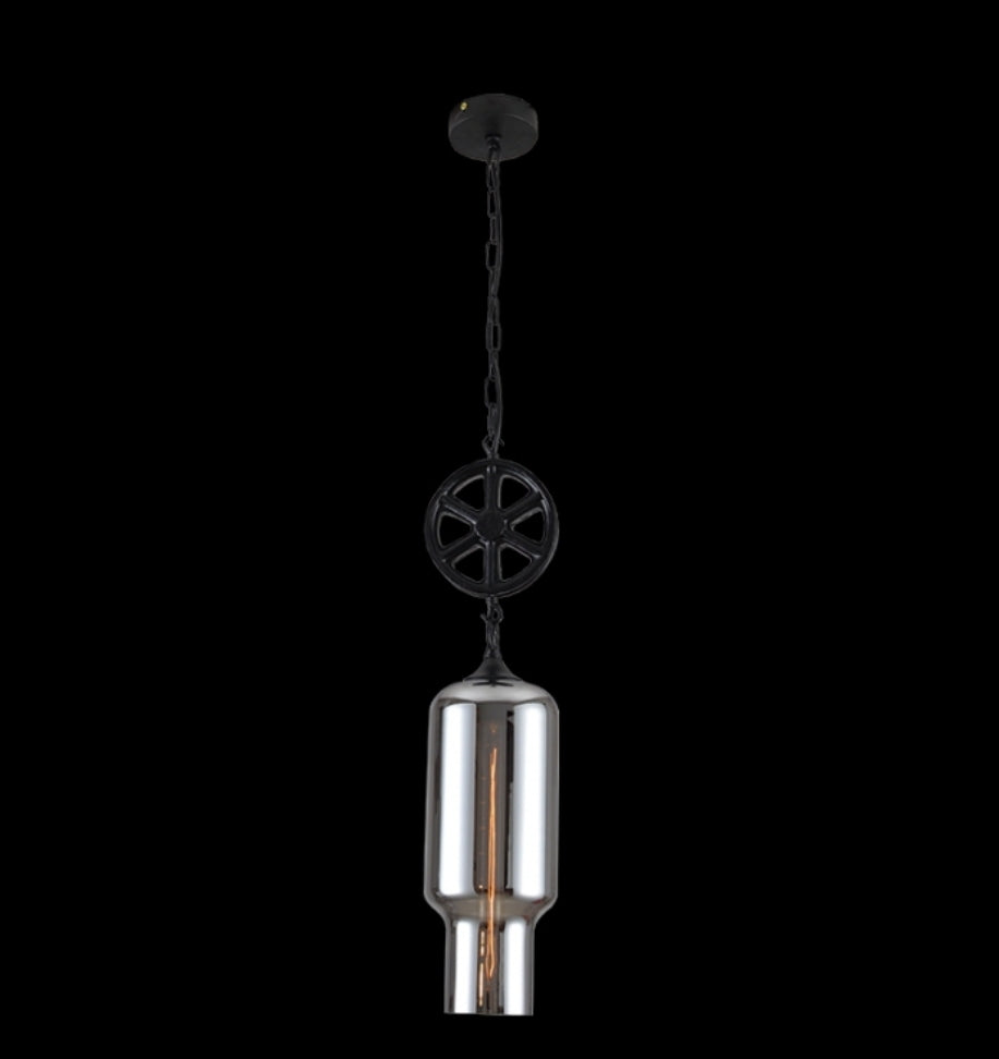 1xE27 Industrial Cylinder Smoke Glass Pendant